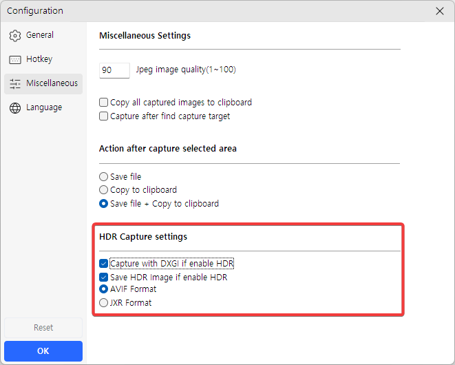 BandiCamera’s HDR capture feature saves HDR screens in HDR-specific formats such as AVIF and JXR. Unlike SDR formats (PNG, JPEG, etc.), HDR-specific formats can preserve the HDR color space.